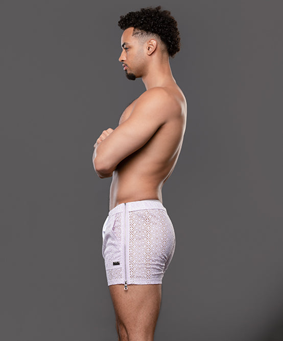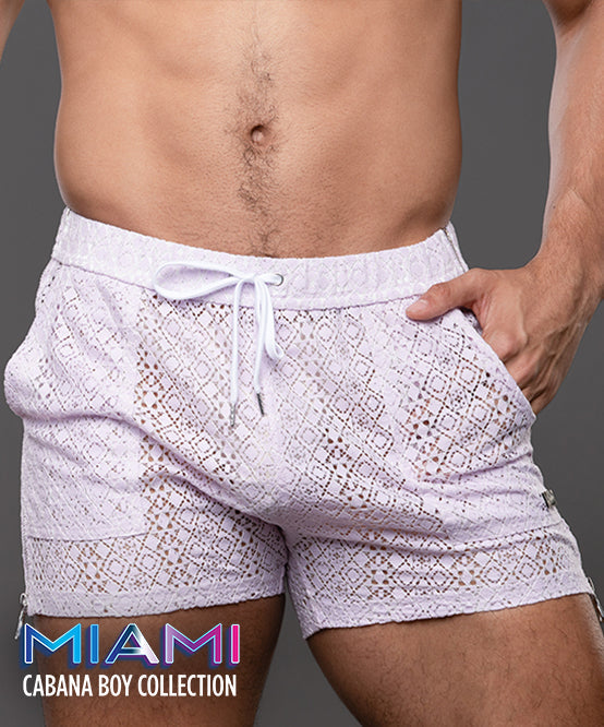 Who says elegance can’t be a little risqué? The Miami Cabana Boy Art Deco Zip Shorts take vintage glam and give it a very modern twist—with a full front zipper that’s more than just decorative. The sheer lace pattern channels South Beach decadence, while the tailored cut hugs you just right. Wear them poolside, on the dance floor, or wherever you’re ready to make your entrance (and maybe your exit). And thanks to the limited edition design and slimming, form-fitting cut, this will quickly become your favorite top. Easy, breezy, and hot AF.
