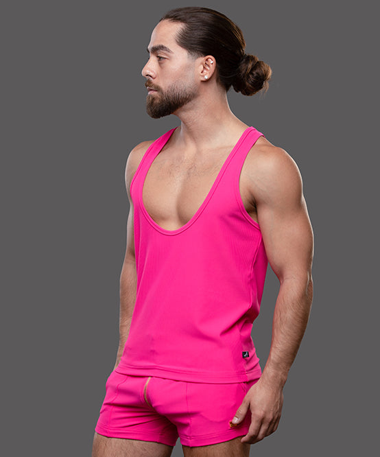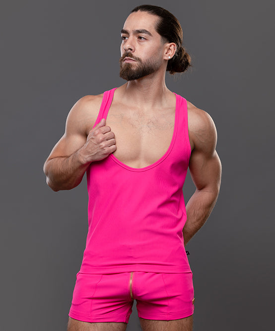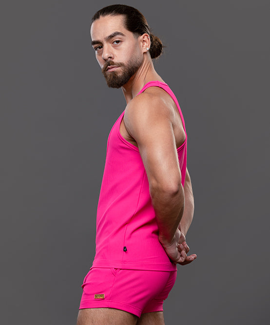 The Miami Cabana Boy Low Cut Tank is your official uniform. With its deep scoop neckline, ribbed texture, and eye-popping pink, this tank was made for bronzed shoulders, bottomless mimosas, and a little light flirting between towel deliveries. Tight, skimpy, and totally Miami. And thanks to the limited edition design and slimming, form-fitting cut, this will quickly become your favorite top. Easy, breezy, and hot AF.