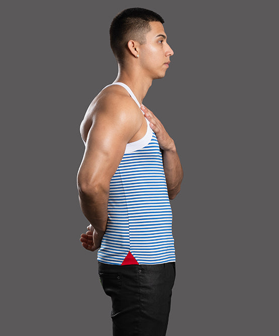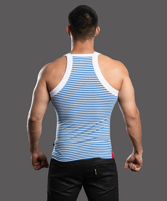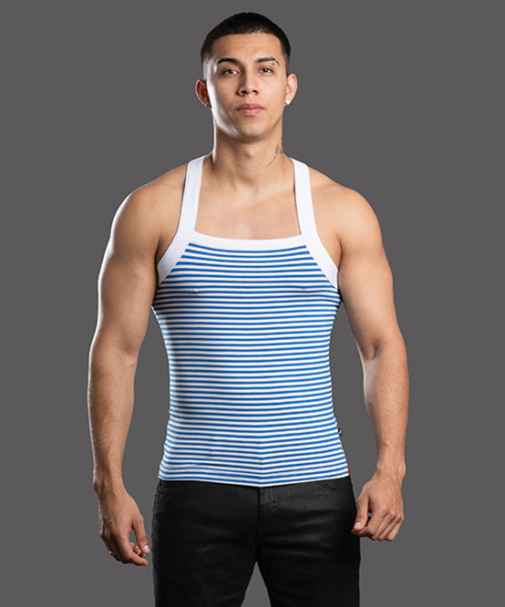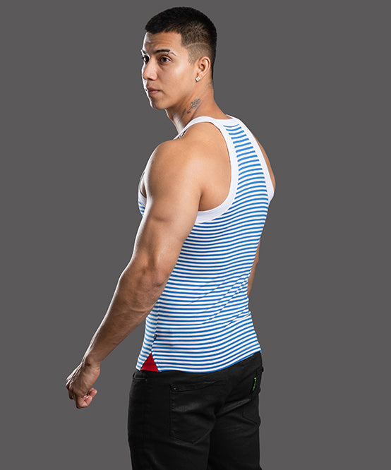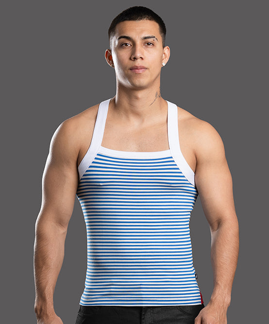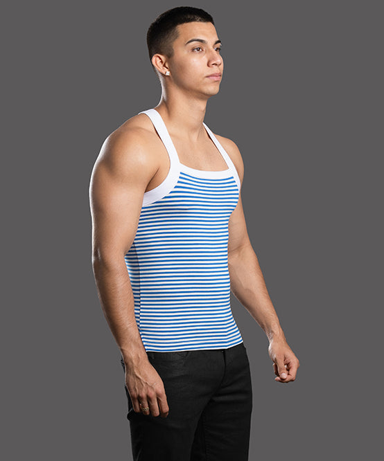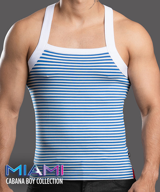 The Miami Cabana Boy Ocean Drive Tank is your new uniform for seaside flirting and scandalous sunbathing. With bold nautical stripes and a square-cut neckline that screams retro Euro twink, this tank was made for sipping spritzes and collecting admirers. It’s stretchy, sexy, and just tight enough to make waves. Bonjour, sailor. And thanks to the limited edition design and slimming, form-fitting cut, this will quickly become your favorite top. Easy, breezey, and hot AF.