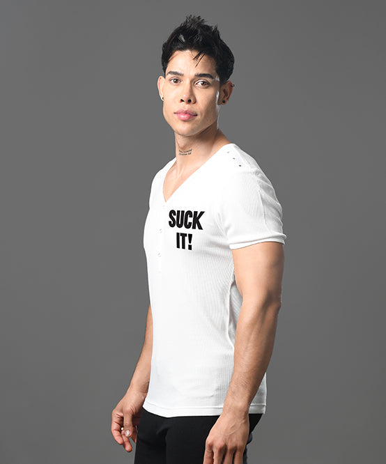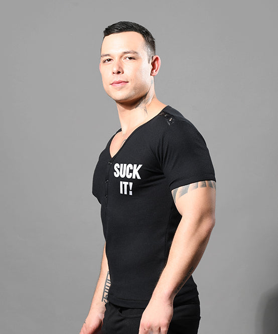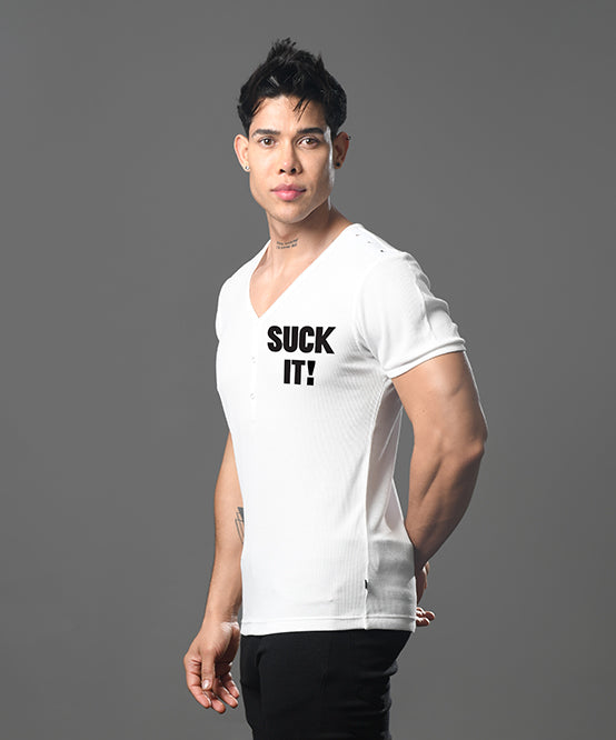 Say it with your chest. Our latest V-neck Tees put your message front and center with a flattering cut that shows off just enough pec to get noticed. Made from soft, breathable fabric with a sexy slim fit, these tees are made to turn heads at brunch, the bar, or wherever the night takes you. Whether you’re at the gym, the club, or just feeling yourself in the mirror, this plunging V design was made to show off. Tight, skimpy, and totally you. And thanks to the limited edition design and slimming, form-fitting cut, this will quickly become your favorite top.