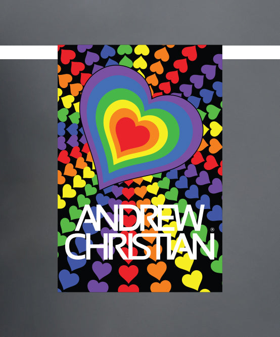 Let the banner of love fly high! Our super fabulous new Pride Hearts String Banner is the cutest way to show the world that you're proud of who you are while simultaneously repping your favorite brand. This large, super vibrant flag with bold ANDREW CHRISTIAN® logo is the perfect accessory for when you want to be just a little extra.