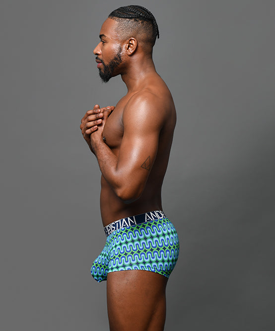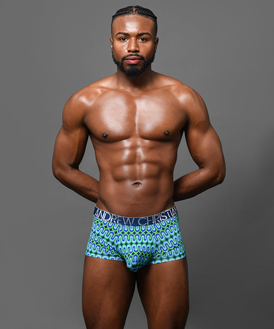 Jet-set vibes meet disco fantasy with the Saint-Tropez Boxer underwear. Featuring a bold, retro-inspired print and luxe metallic waistband, this playful style is ready for yachts, beach clubs, and wherever the party takes you. A perfect pick for the man who lives for summer escapes and unforgettable nights. And with the help of our slimming waistband and built-in ALMOST NAKED® pouch, you’ll feel like you’re not wearing anything at all! We’ve virtually eliminated sticking, squashing, re-adjusting, sweating, or chafing. Your package will fall naturally into the anatomically correct pouch to create a truly enjoyable and unique wearing experience. Now that's something to be happy about!
